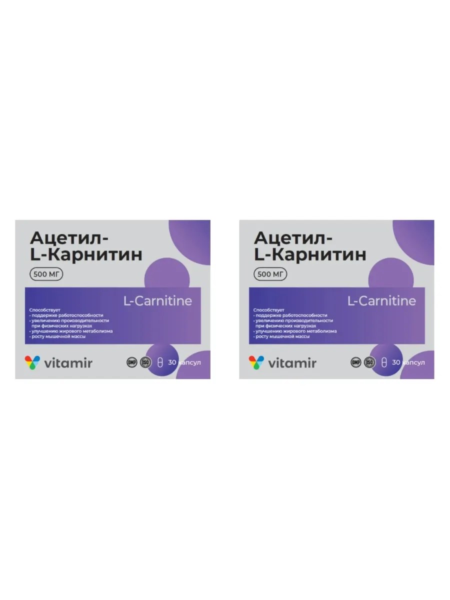 Ацетил-L-Карнитин, 30 капсул по 500 мг х 2 упаковки