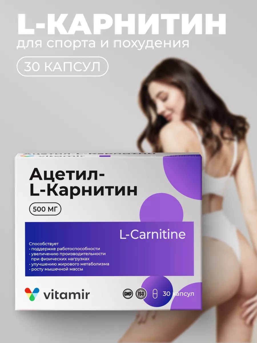 Ацетил-L-карнитин 500 жиросжигатель для похудения капсулы № 30 ВИТАМИР.