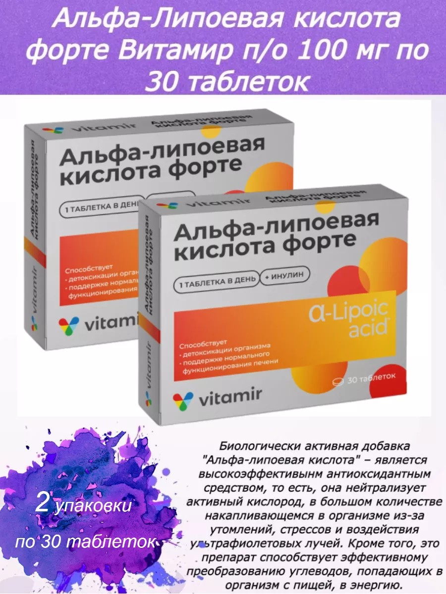 Альфа-липоевая кислота форте Витамир 30 таб. 2 уп.