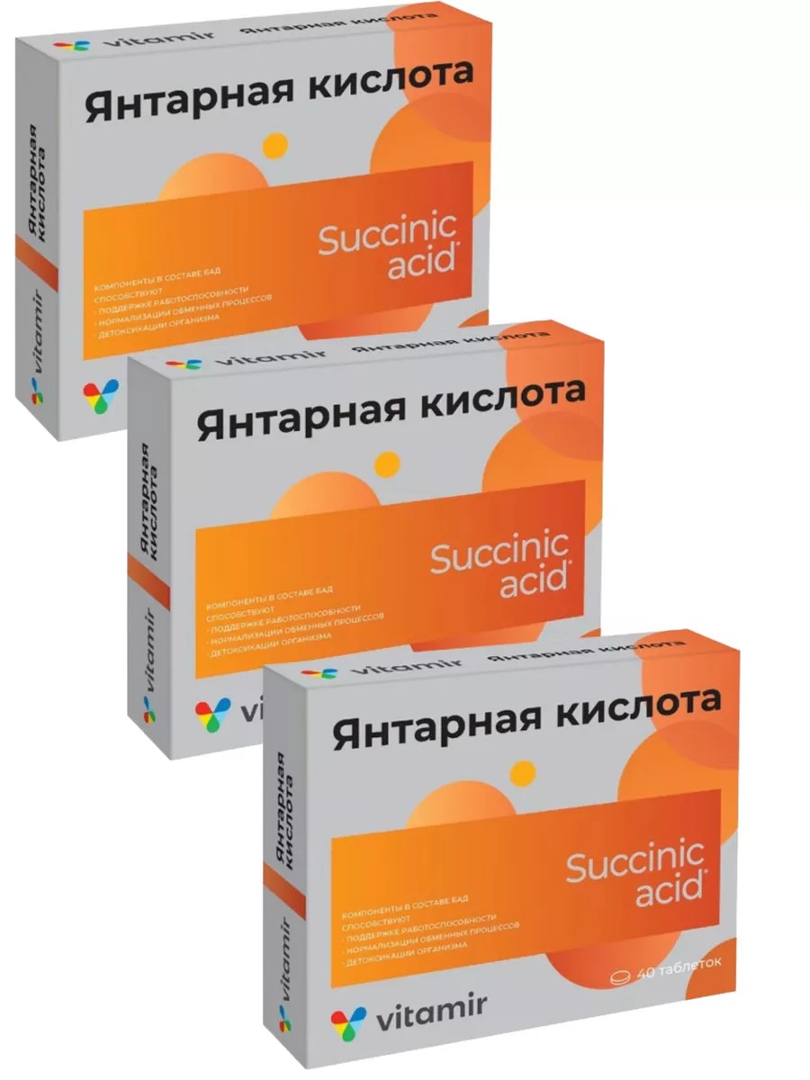 ВИТАМИР Янтарная кислота Квадрат-С 40 таб массой 0,5 г-3уп