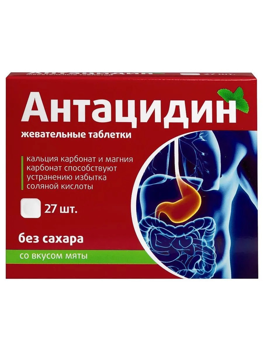 антацидин n27 табл жеват по 1250мг. в качестве дополнительного источника кальция и магния. в качестве биологически активной добавки к пище. кальция карбонат, сорбит (подсластитель), магния карбонат, тальк (агент антислеживающий), крахмал картофельный, кальция стеарат (агент антислеживающий), аспартам (подсластитель), ароматизатор натуральный «мята» (ароматические вещества, пропиленгликоль или ароматические вещества, триацетин).. (далее согласно приложению). биологически активные вещества, мг/табл (±10%): кальций - 270,0, магний - 25,0 -