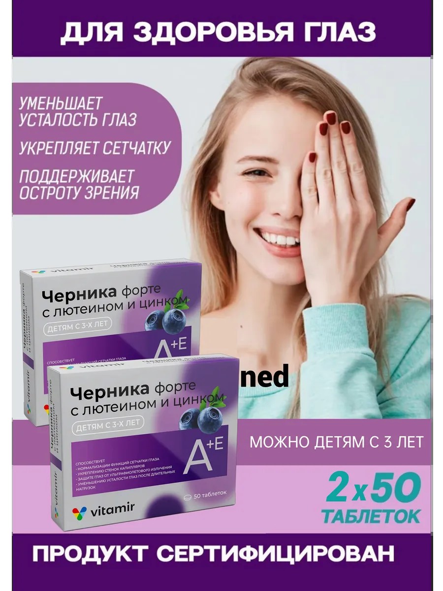 БАД от усталости глаз Черника форте форте с лютеином и цинком - биологически активная добавка (БАД) к пище, которая поможет сохранить зрение и защитить здоровье глаз в условиях повышенной зрительной нагрузки.
