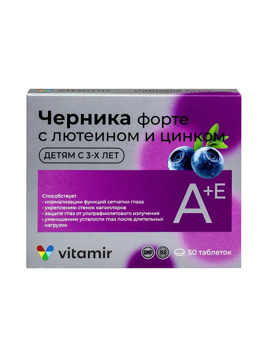 ВИТАМИР Черника форте с лютеином и цинком таблетки 4 уп по 50 шт.