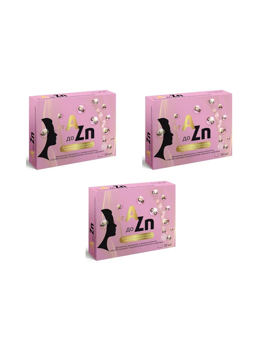 Комплекс от A до Zn для женщин, 30 таб по 1100 мг х 3 уп