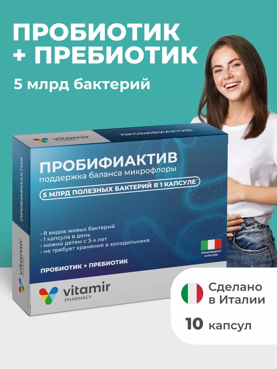 БАД «Пробифиактив» Пробиотики и пребиотики для пищеварения капсулы №10 ВИТАМИР.
