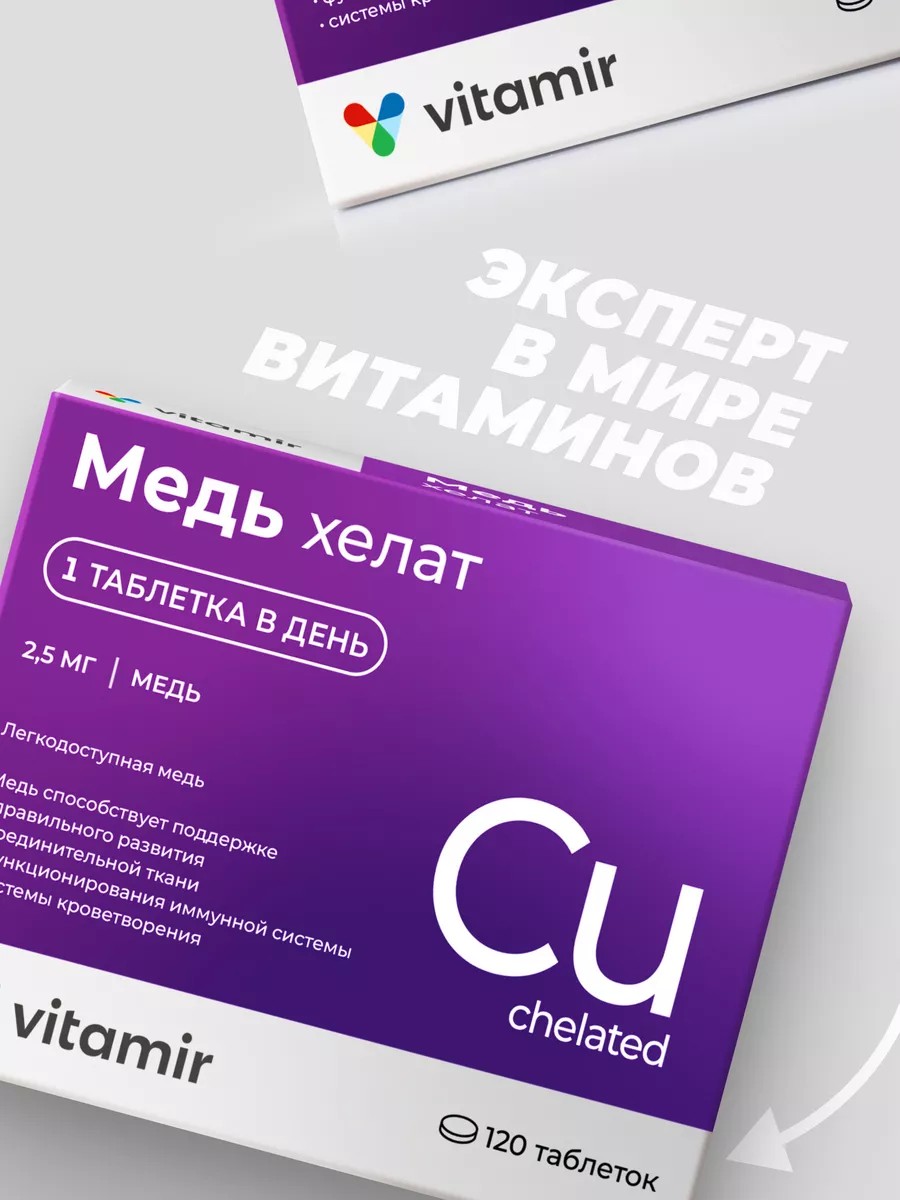 Медь хелат таб. №120 VITAMIR. Медь - жизненно важный микроэлемент для организма человека, который влияет на активность витаминов, гормонов и ферментов. Она участвует во многих процессах обмена веществ, способствует поддержанию иммунной системы организма, повышая его сопротивляемость инфекциям, обеспечивает усвоение железа. Медь обеспечивает синтез коллагена и эластина. Таким образом, медь важна для правильного развития соединительной ткани и кровеносных сосудов. Хелат - это более энергетически выгодная для организма форма усвоения металлов, которая обеспечивает их наилучшую биодоступность. Также в нашем магазине вы можете купить бады и витамины для детей подростков и взрослых мужчин женщин и девушек мультивитамины и поливитамины витаминные и витаминно-минеральные комплексы для иммунитета здоровья кожи лица ногтей волос добавки для суставов мозга энергии нервной системы и работоспособности капсулы от усталости и стресса и снижения веса БАДы для сердца печени желудка глаз спортивное питание аминокислоты В том числе: хром цинк b комплекс коллаген морской и говяжий порошок селен тирозин коэнзим калий магний коллаген женьшень gaba карнитин таурин йод спирулина аргинин калий магний цимицифуга глицин холин альфа липоевая кислота пантотеновая кислота инозитол 1000 куркумин имбирь + чеснок гуарана валериана пробиотик биотин лизин витамины группы в глюкозамин хондроитин мсм / msm треонин бузина пролин кордицепс хром хелат лейцин инулин кордицепс рейши шиитаке медь хелат д манноза цистеин витамины для беременных витамины для волос витамины от выпадения витамины для роста волос витамины для кожи и ногтей и другие пищевые добавки.