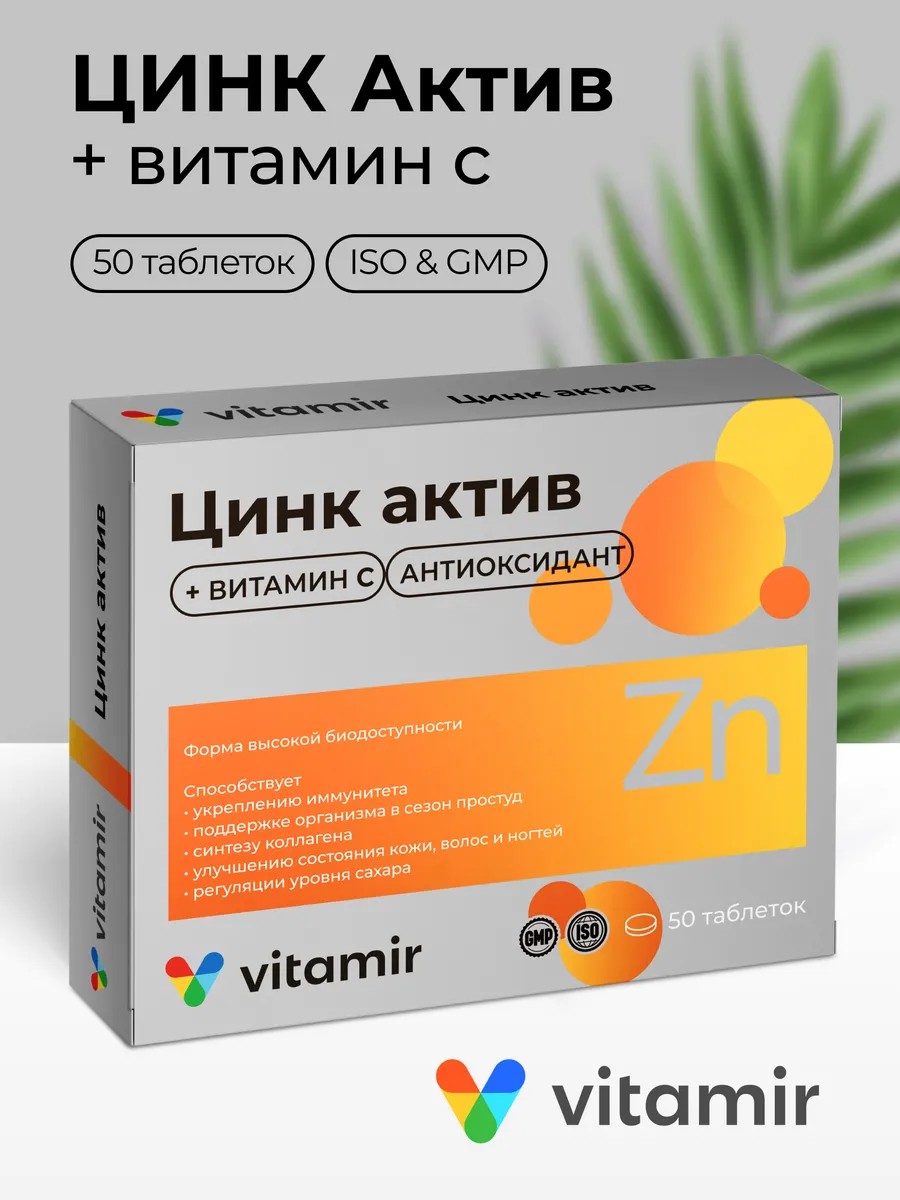 БАД Цинк Актив с витамином C для поддержки иммунитета 50 таб. VITAMIR.