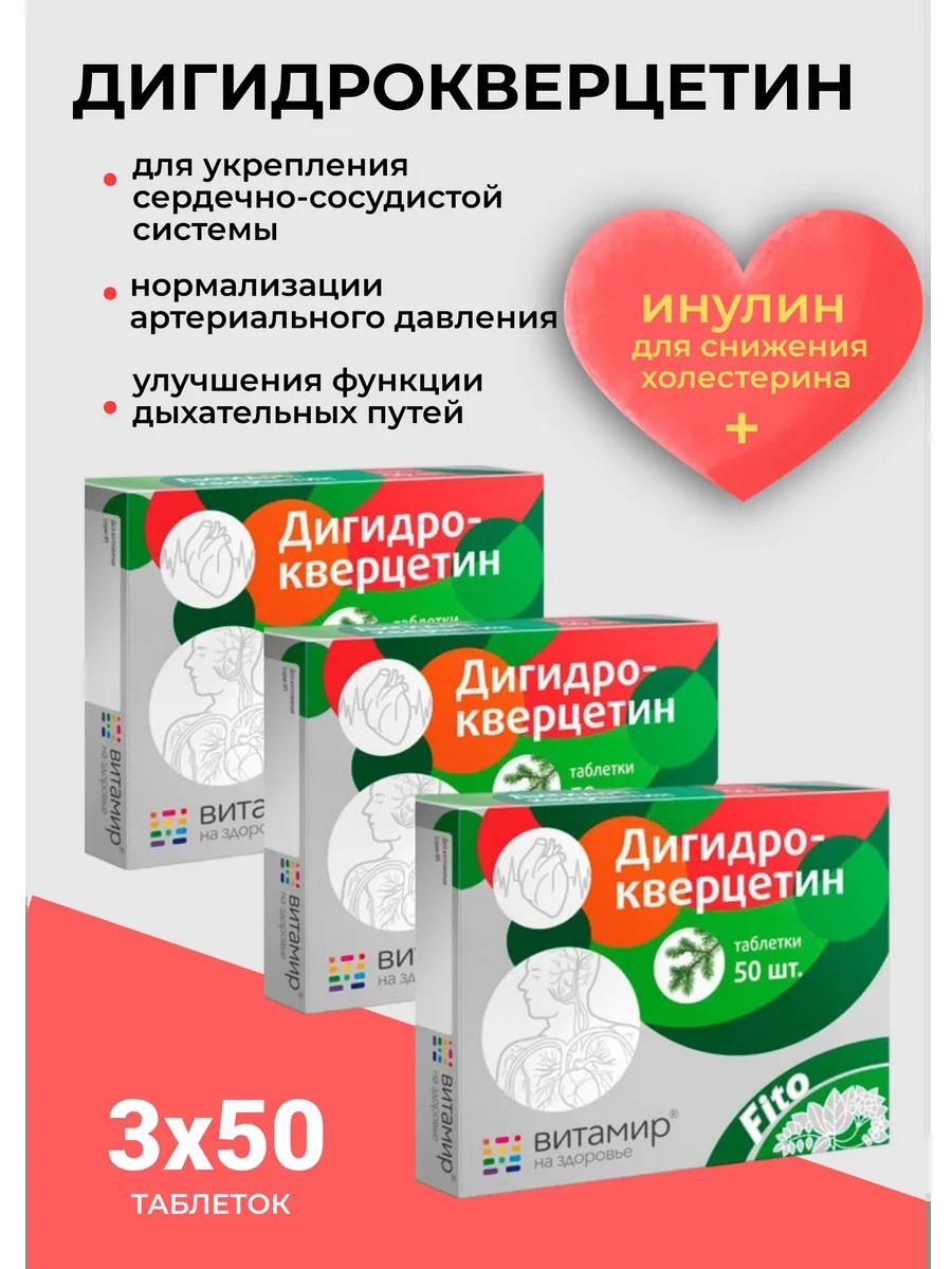Дигидрокверцетин витамины для сердца и сосудов 50Х3 таб
