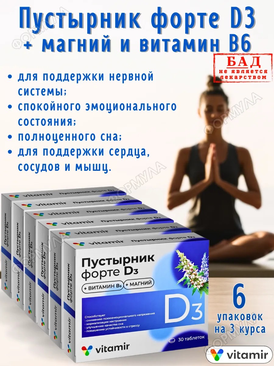Пустырник форте + витамин Д3, В6 +магний комплекс 30таб*6уп