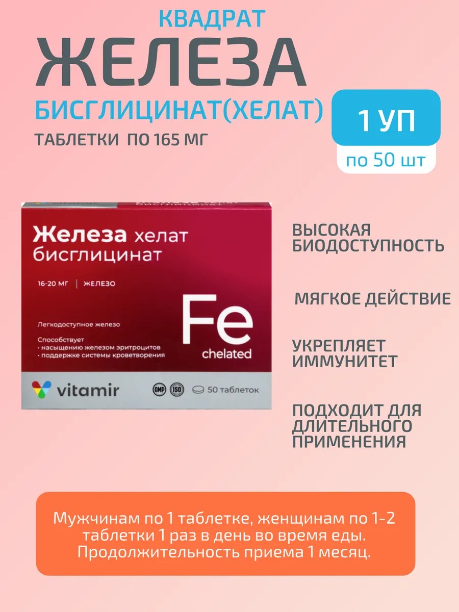 ВИТАМИР Железа бисглицинат 50 таб-1 уп