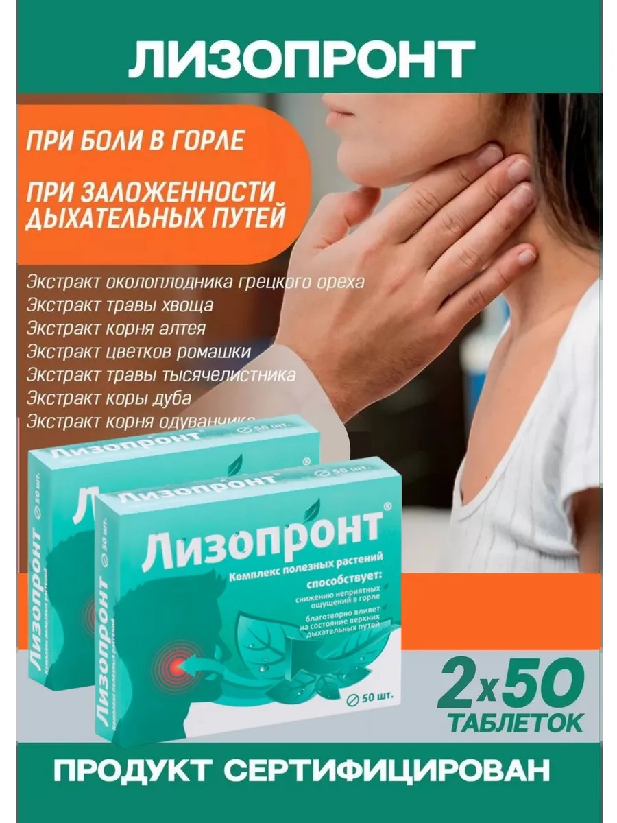 Лизопронт - биологически активная добавка при боли в горле, при залдоженности дыхательных путей.