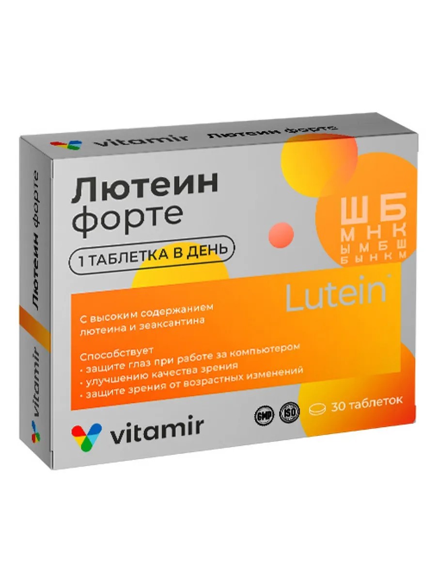 | Торговое наименование | биологически активная добавка к пище "Лютеин форте витамины для глаз ВИТАМИР ®" (таблетки покрытые оболочкой массой 618 мг±10%) |