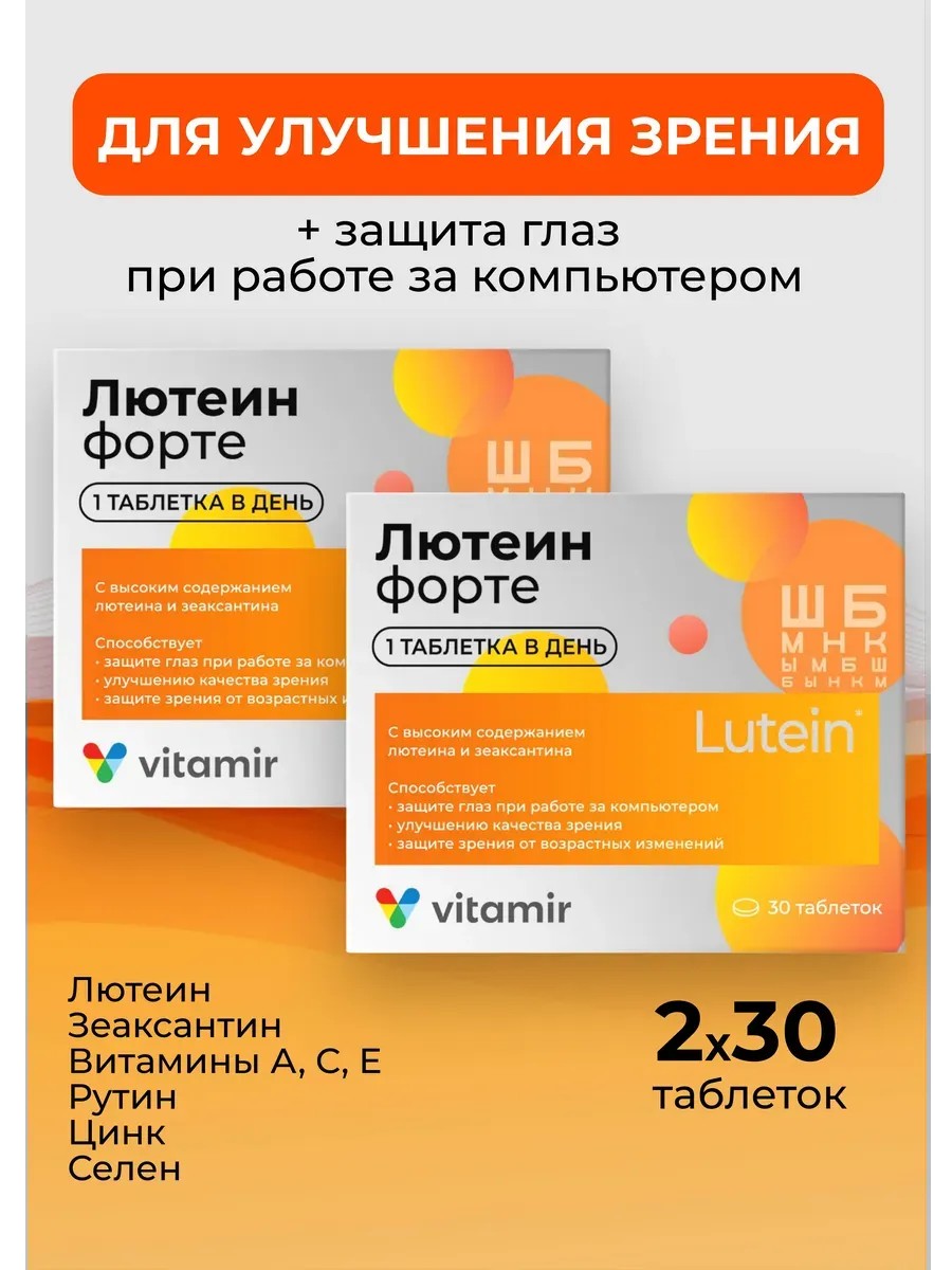 ВИТАМИР Лютеин форте с Зеаксантином витамины для глаз 2 упаковки