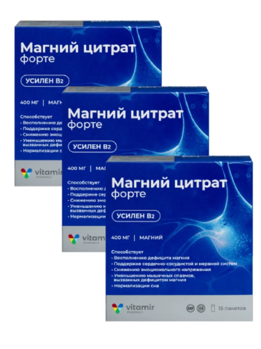 ВИТАМИР Магний Цитрат Форте 15 стик-пакетов/3 упаковки