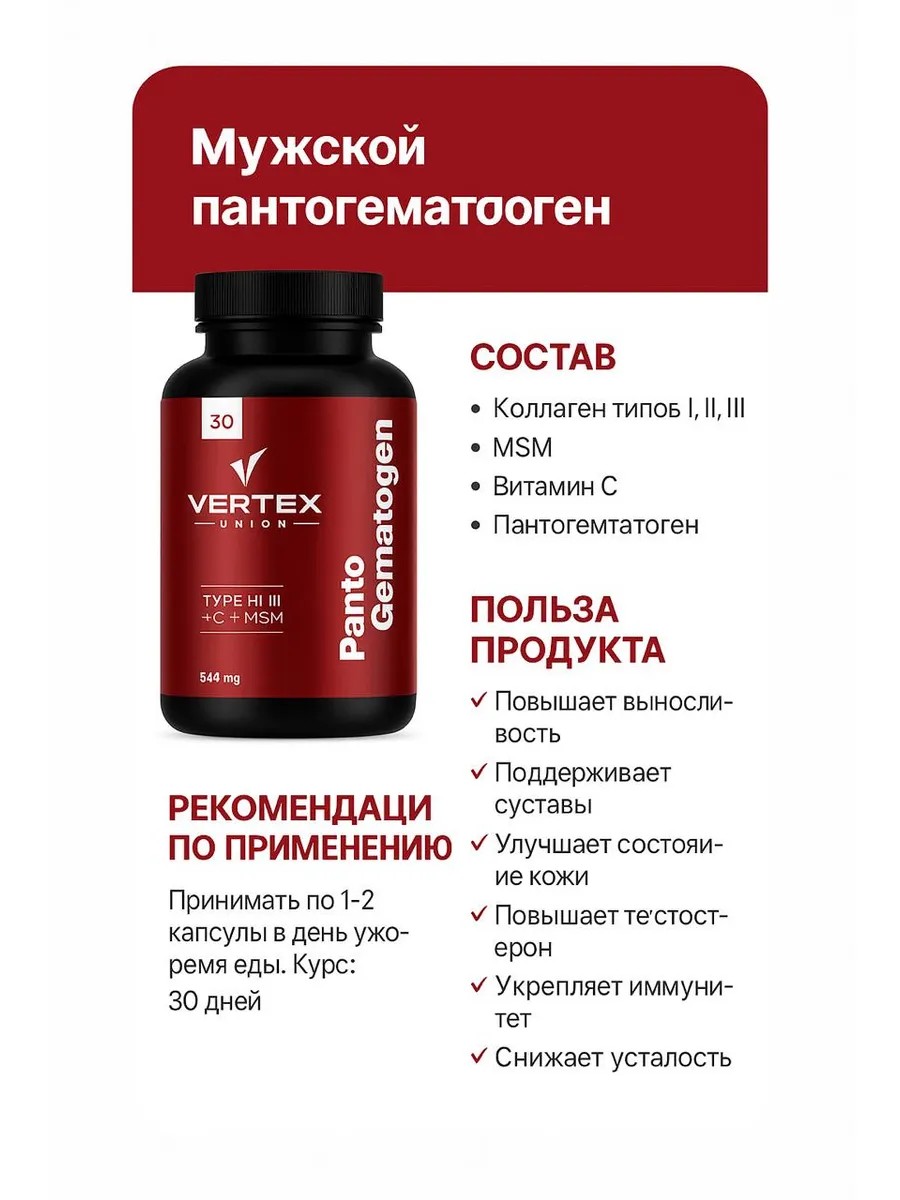 Men's Pantohematogen from VERTEX UNION is a powerful dietary supplement for supporting men's health, endurance, and energy.