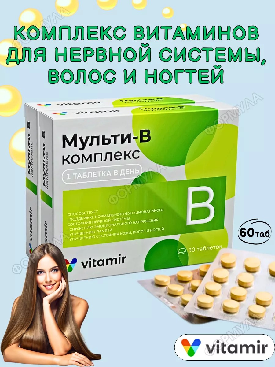 | Package | multi-B-complex Vitamir for the nervous system of hair and nails n30 tablets 560 mg * 2 pcs. |