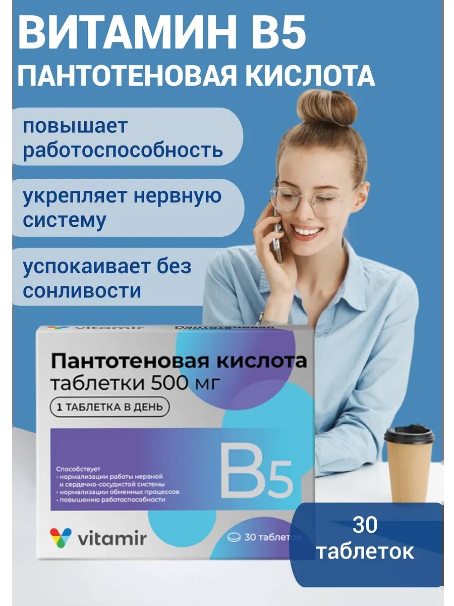 ВИТАМИР Пантотеновая кислота для памяти витамин B5 30 таблеток