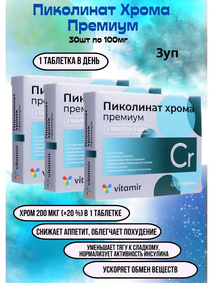 Пиколинат хрома премиум для похудения 3уп по 30тб