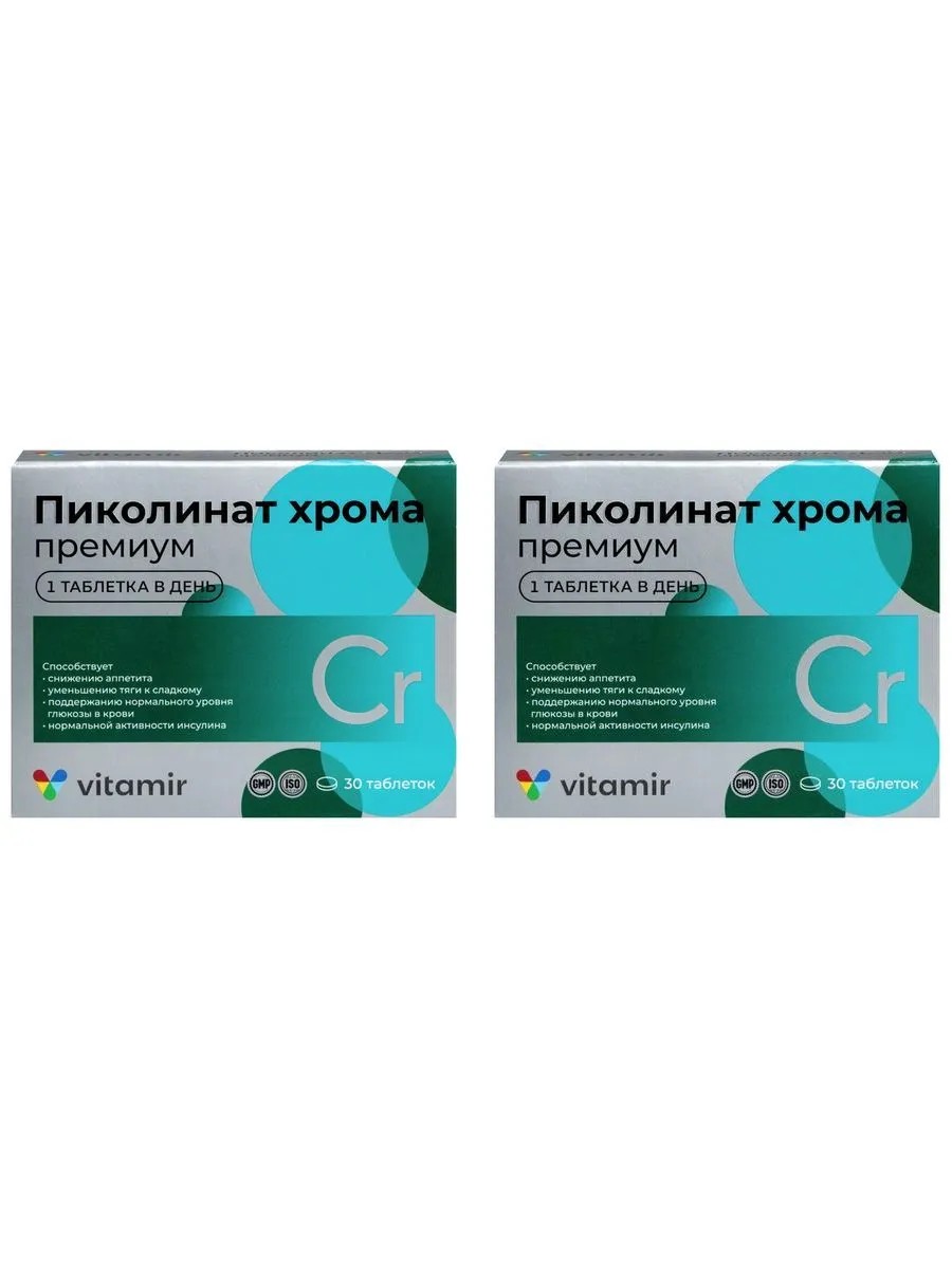 ВИТАМИР пиколинат хрома премиум n30 табл п/о по 100мг - 2шт