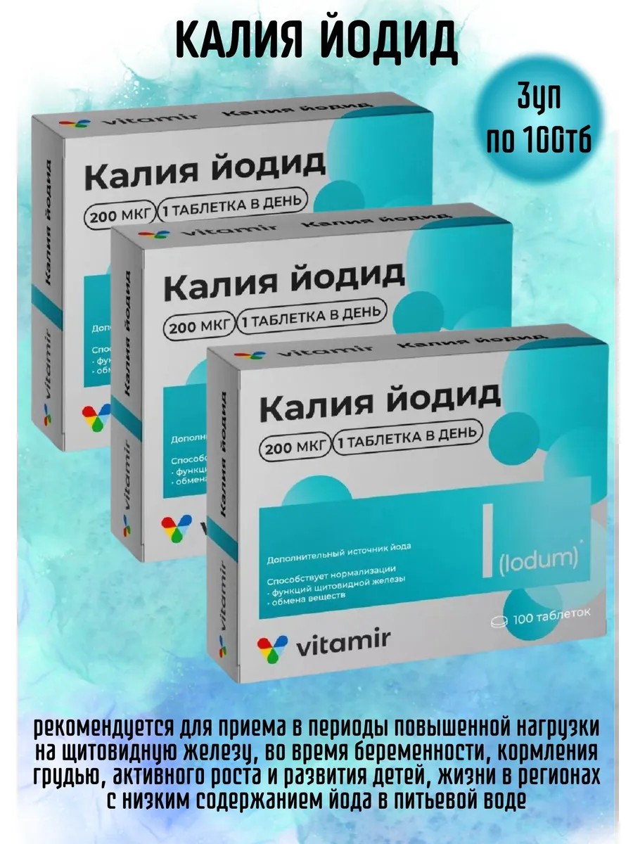 Калия Йодид 200мкг 3уп по 100тб