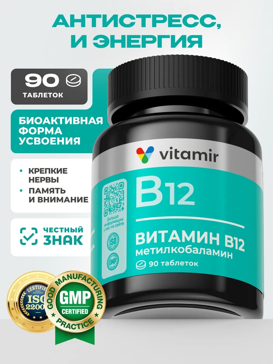БАД Метилкобаламин VITAMIR PRO Витамин в12 для нервной системы 90 таблеток.