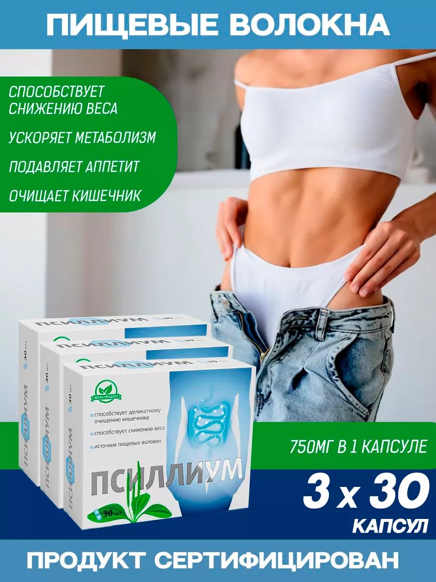 Dietary supplement "Psyllium 750 mg" (psyllium husk) - fiber for weight loss and detox. This superfood is highly purified – 99%!