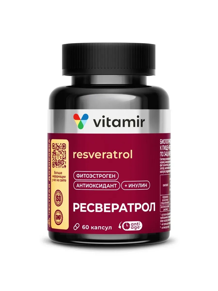 ВИТАМИР Ресвератрол , по 150 мг 60 капсул 340 мг -2 шт.