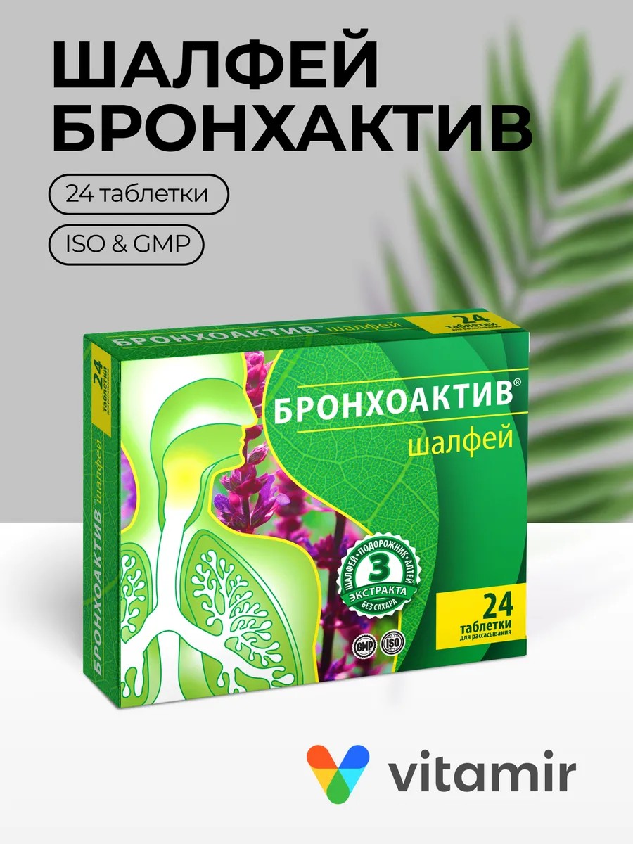 | Полное наименование товара | Шалфей Бронхоактив VITAMIR, растительные таблетки от кашля |