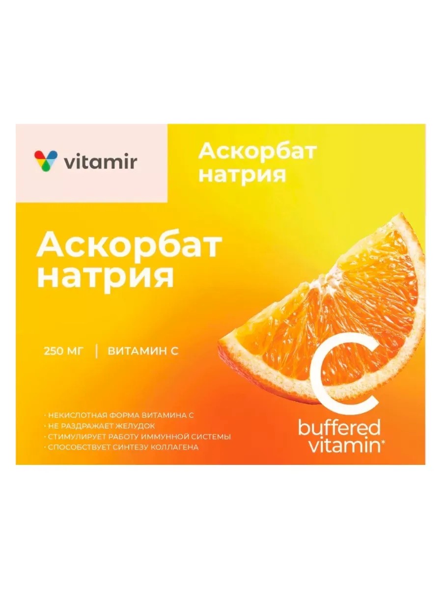 ВИТАМИР Vitamir Аскорбат натрия vitamin C 30 таблеток массой 600 мг