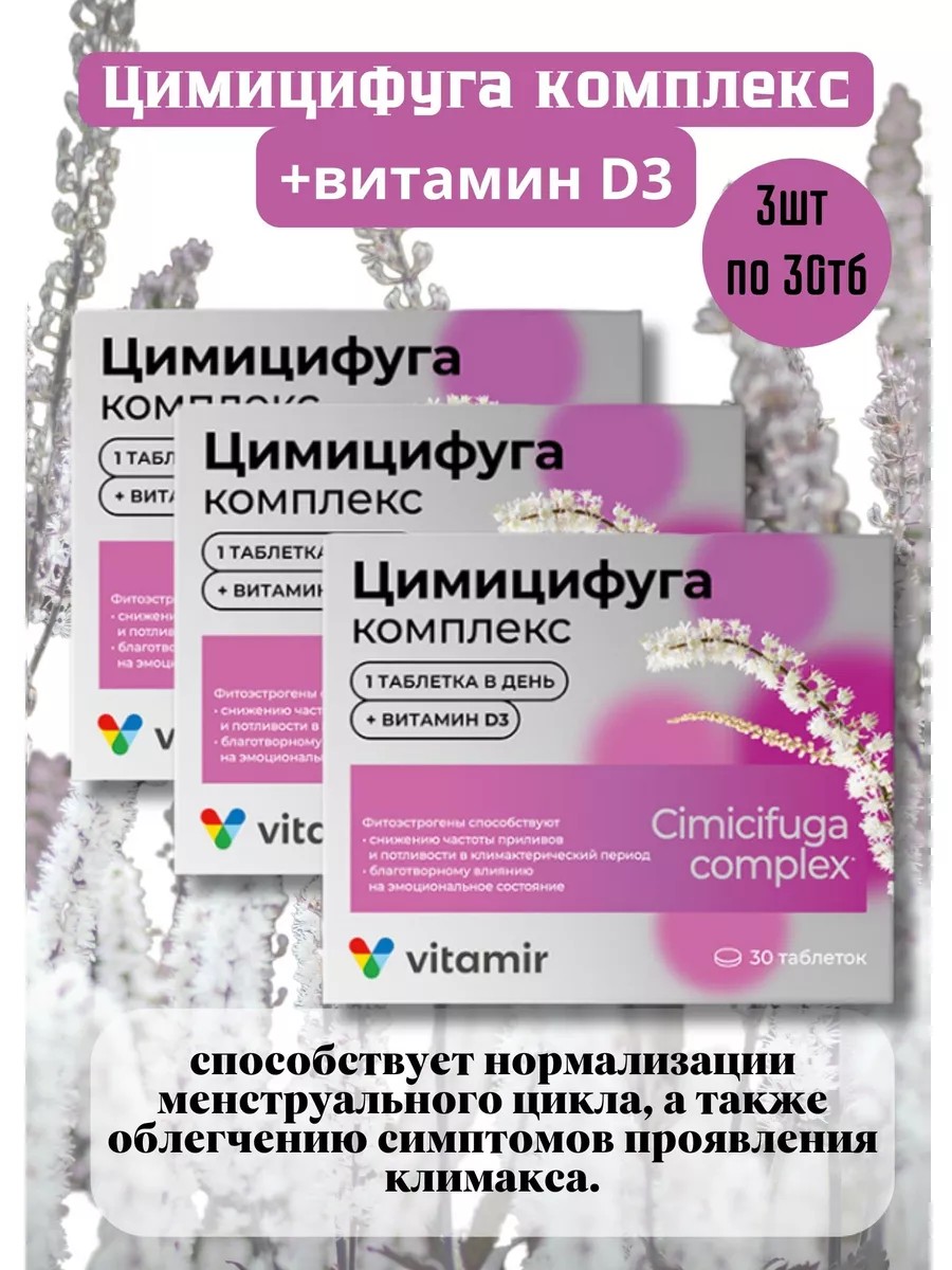 Цимицифуга комплекс+D3 при приливах и климаксе 3шт по 30тб