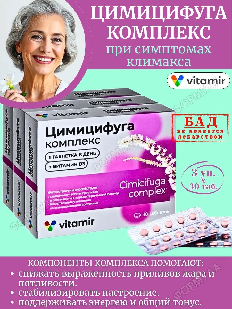 Цимицифуга комплекс при климаксе и менопаузе 30таб*3уп