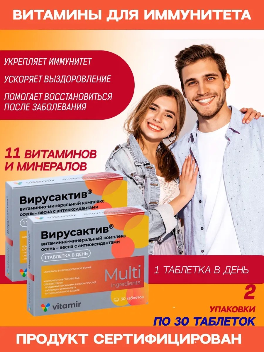 ВИТАМИР Вирусактив комплекс с янтарной кислотой+селеном+цинком 30х2