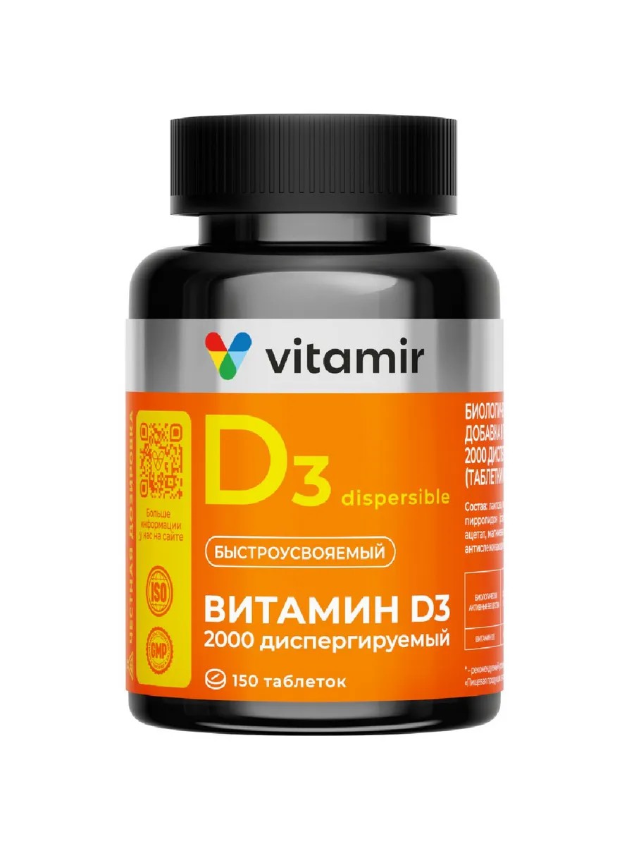 Витамин D3 2000 диспергируемый - в форме подъязычных таблеток, которые быстро растворяются и легко усваиваются организмом.