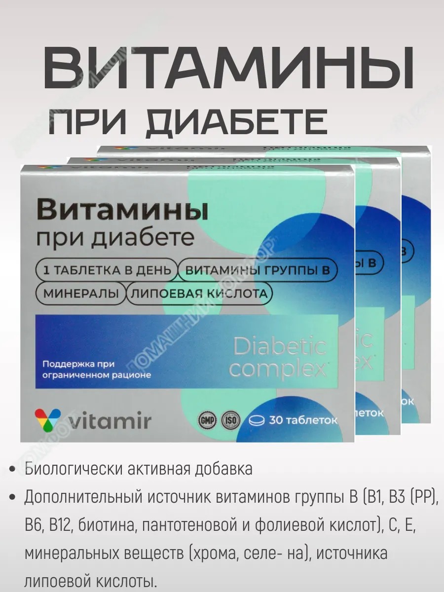 | Комплектация | ВитаминыПриДиабетеN30ТаблП/оПо824мг; 3шт |