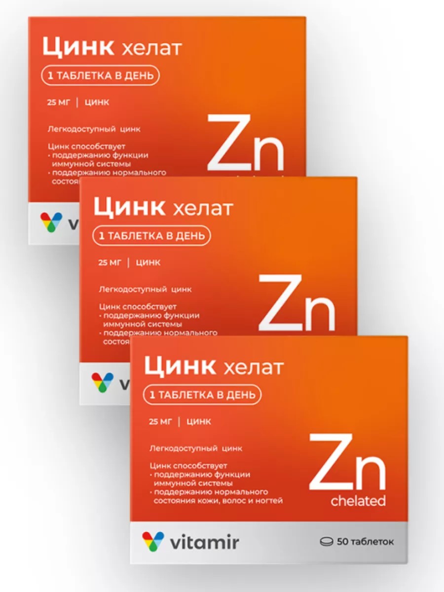 Витамир Цинк Хелат таблетки 200мг 3 уп.