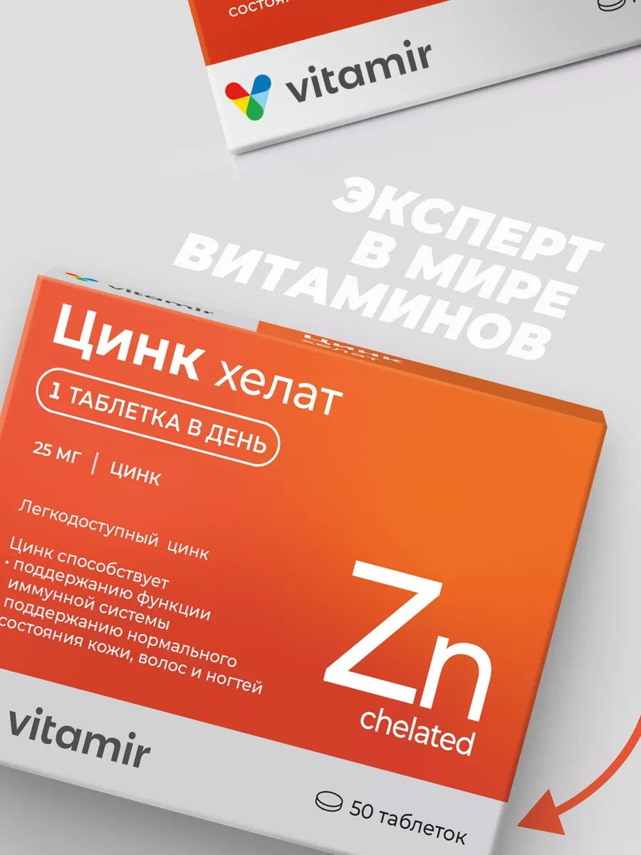 БАД Цинк хелат Vitamir является дополнительным источником легкодоступного цинка, который способствует: поддержанию функции иммунной системы, поддержанию нормального состояния кожи, волос и ногтей, регуляции уровня тестостерона. Каждый день мы неизбежно сталкиваемся с инфекциями. Помочь иммунитету может цинк. Являясь катализатором многих клеточных процессов, цинк имеет важное значение для поддержания нормальной иммунной активности на протяжении всей жизни. К тому же, этот микроэлемент обладает антиоксидантными свойствами.