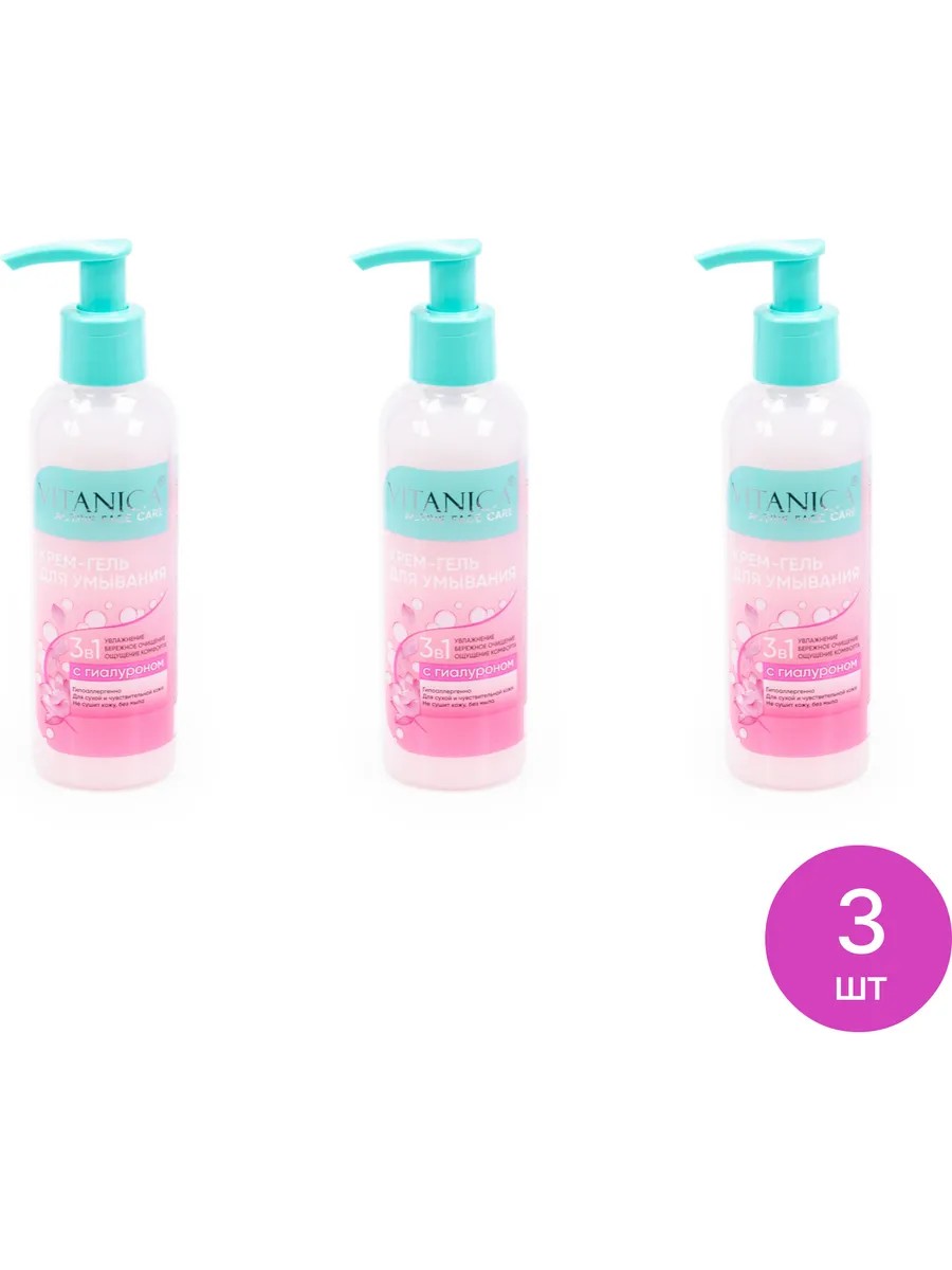 Vitanica Крем-гель для умывания 3в1 с гиалуроном, флакон 200мл, 3 шт