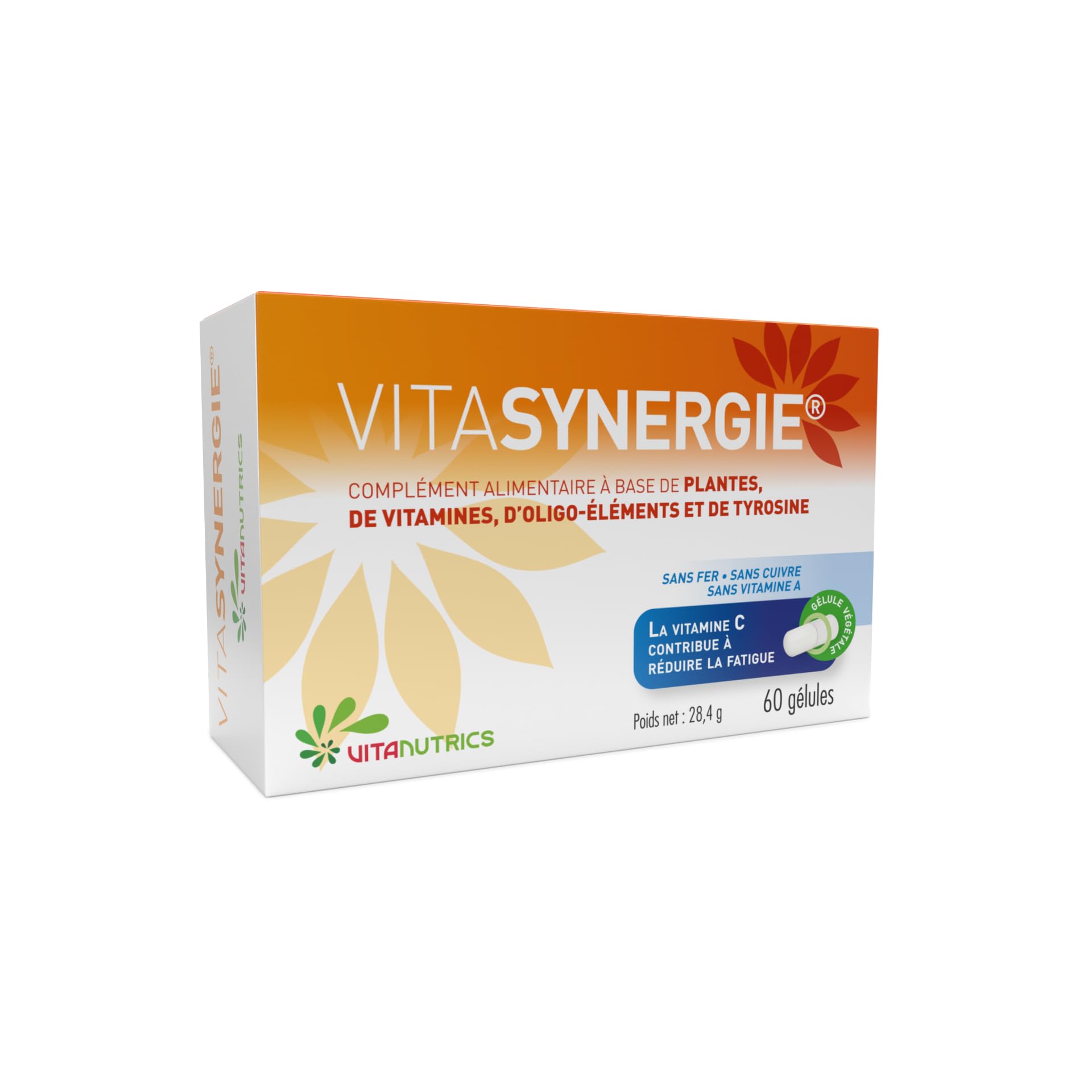 Vitanutrics Vitasynergie - 60 gélules - Acérola, tyrosine vitamines - Immunité - Fatigue - Formule végan - Fabriqué en France