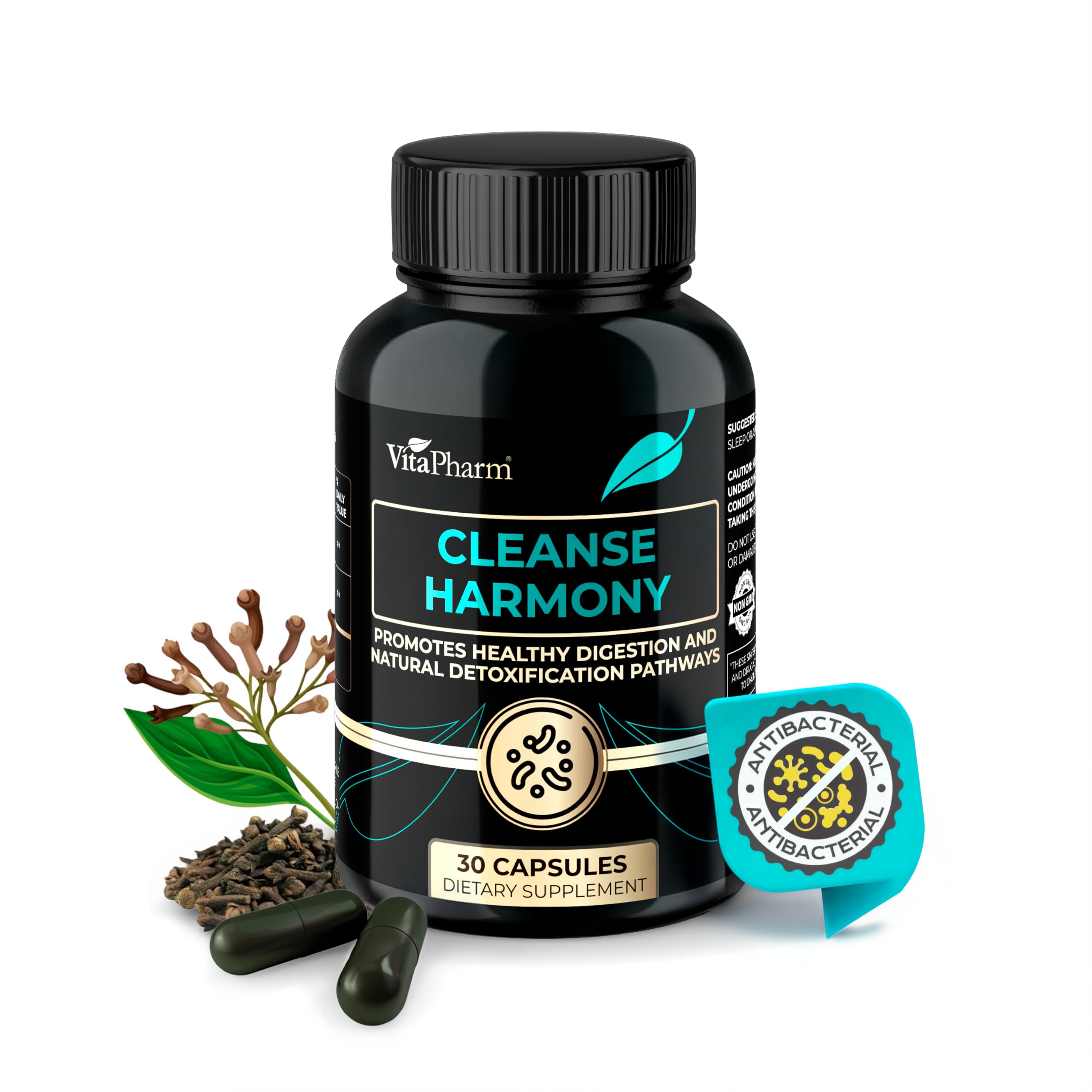 VitaPharm Cleanse Harmony Supports Digestive Health & Detox Pathways, Plant-Based Formula with Pomegranate & Syzygium Aromaticum, Non-GMO, No Artificial Ingredients, 30 Capsules