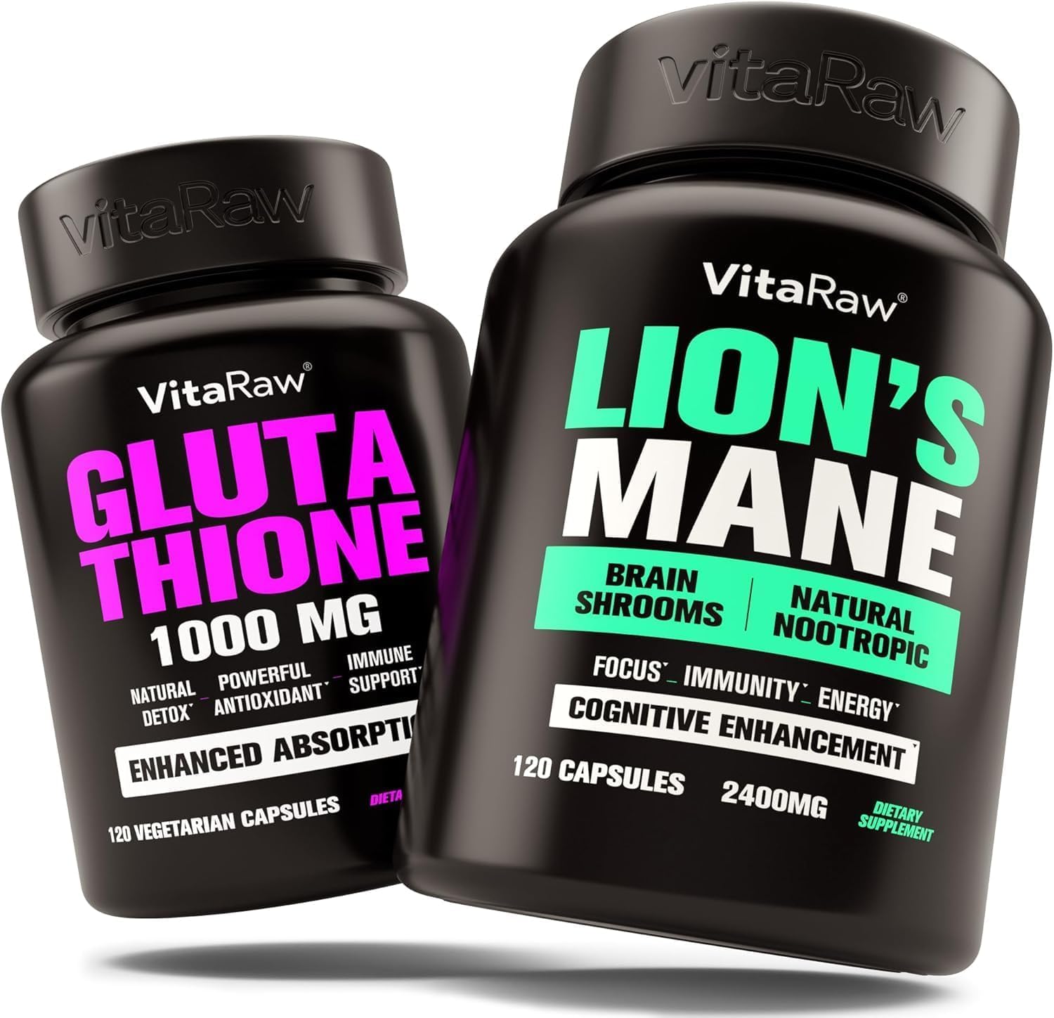 VitaRaw Glutathione for Immune Support + Organic Lions Mane Mushroom Capsules