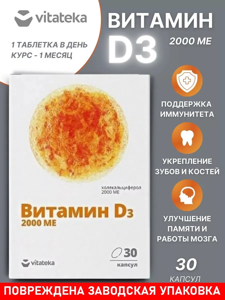 | Полное наименование товара | Витатека Витамин D3 2000 МЕ |