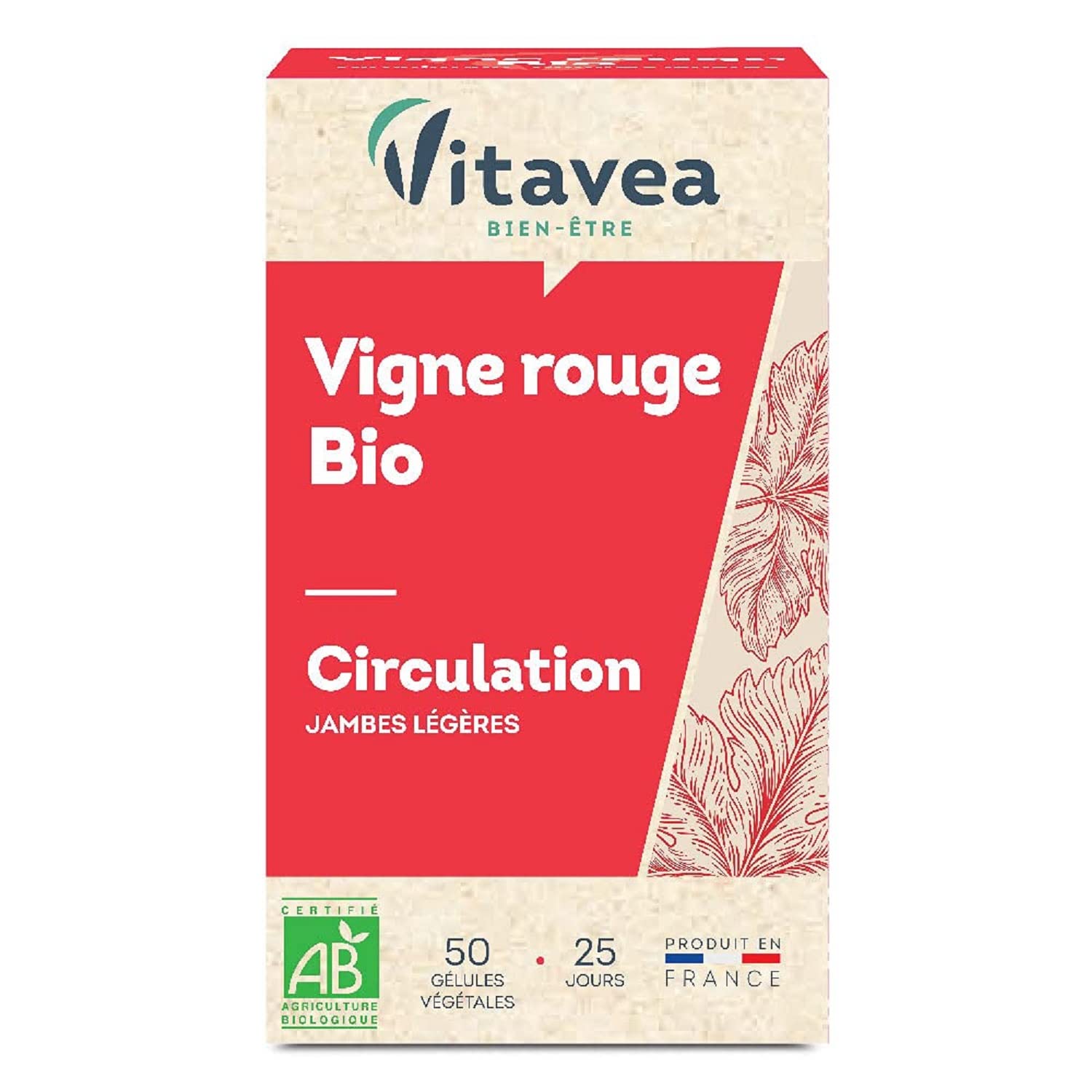 Vitavea - Circulation Food Supplement - "Light Legs" Sensation - Organic Red Vine - Light Legs and Venous Circulation - 50 Capsules - 25 Day Cure - Made in France