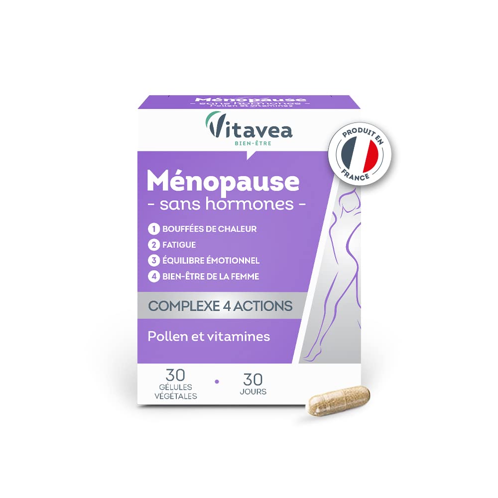 Vitavea Menopause Pre-Menopause Hormone Free Dietary Supplement - Hot Flashes Fatigue Emotional Balance Women's Well-Being - Pollen Vitamins B6 B9 - 30 Capsules - Made in France