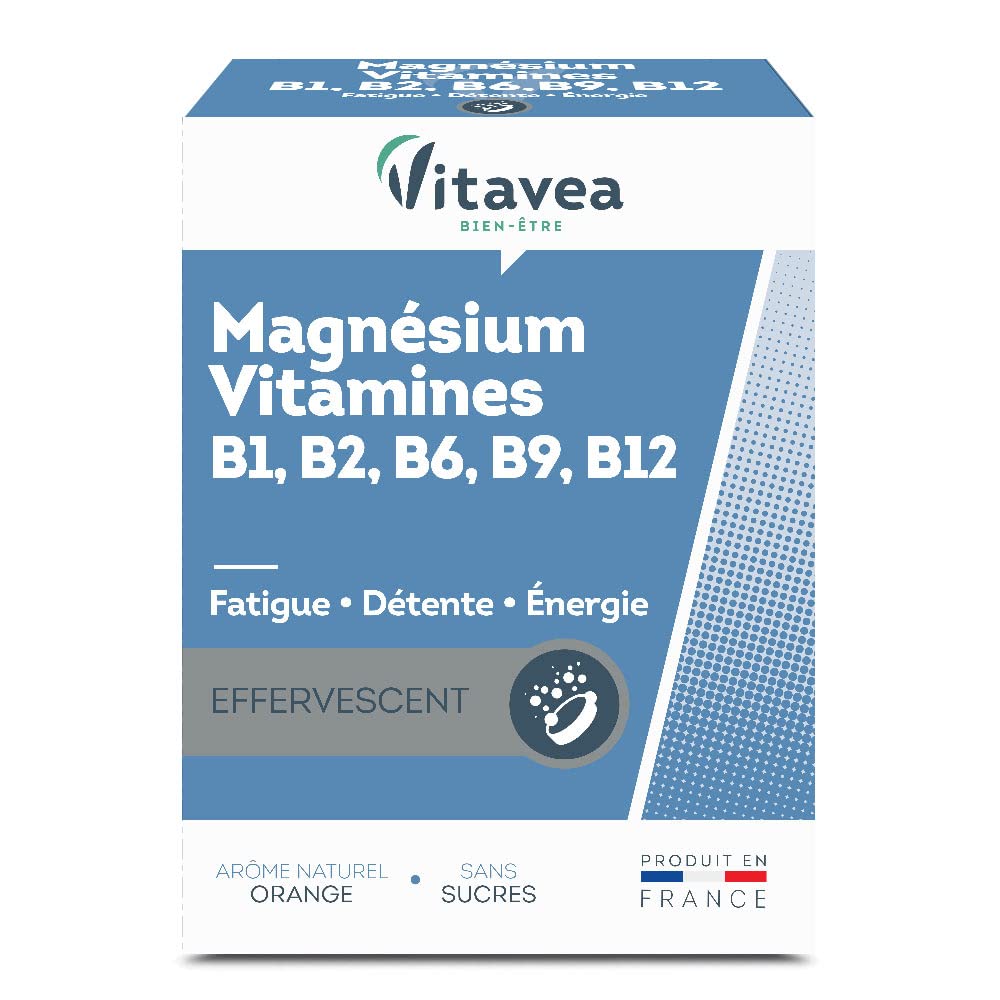 VITAVEA WELL-BEING - Magnesium - Vitamins B1. B2. B6. B9. B12 - Reduction of Fatigue - Relaxation and Relaxation - 24 Effervescent Tablets - Made in France