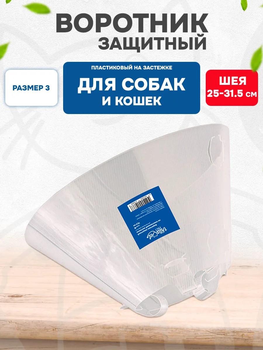 | Комплектация | Воротник защитный для собак и кошек средних пород послеоперационный период на застежке №3 12,5 см |