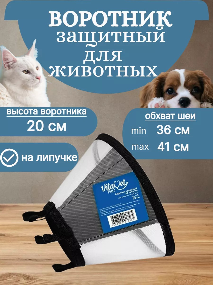 VitaVet Воротник защитный ветеринарный для кошек и собак 20 см(Е)