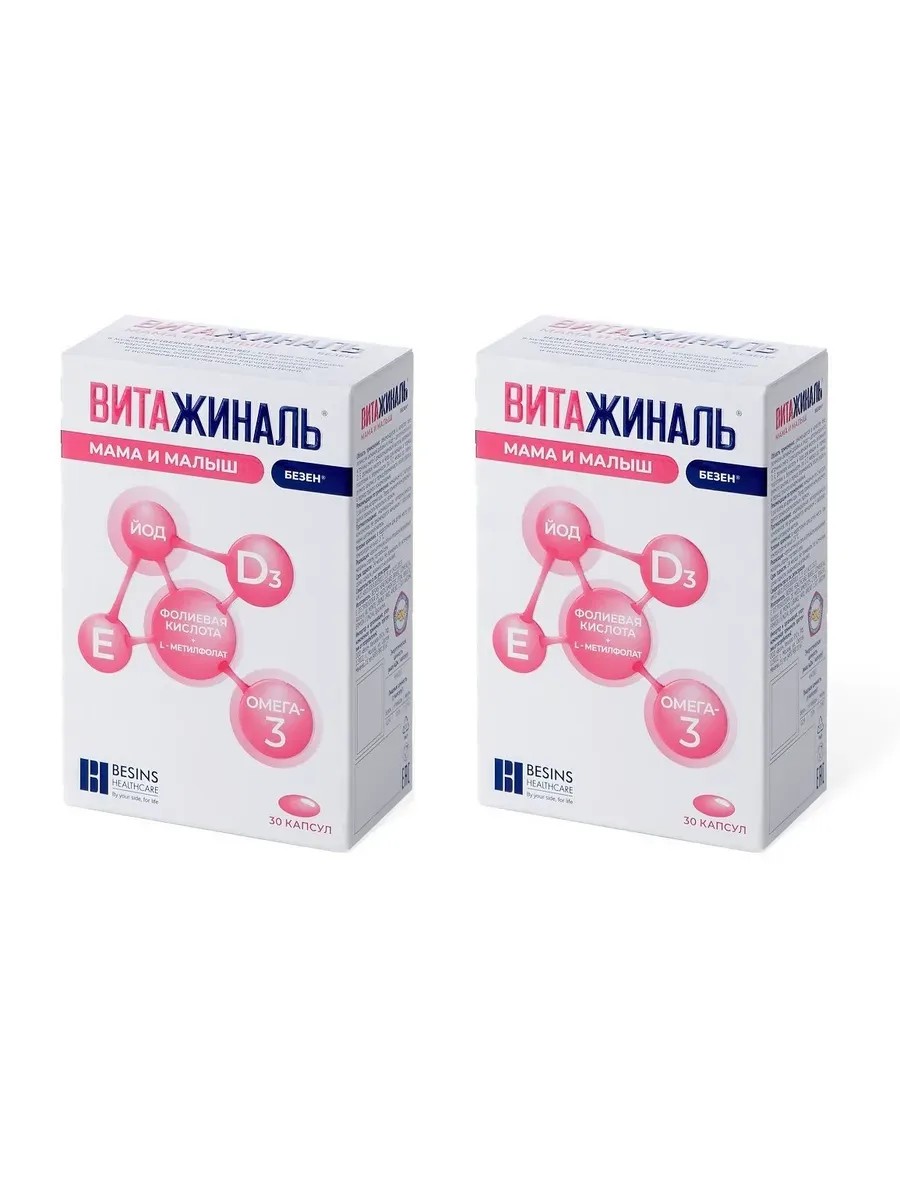 ВИТАЖИНАЛЬ МАМА И МАЛЫШ БЕЗЕН - это биологически активная добавка к пище для женщин, планирующих беременность, во время беременности, после родов и кормящих грудью. Известно, что во время подготовки и в течение самой беременности и лактации организму женщины требуется большее количество витаминов и микроэлементов, недостаток которых может привести к негативным изменениям в организме матери или плода. В такой ситуации рациональным представляется их дополнительный прием не только во время беременности, но и на этапе её планирования, и в период лактации. Прием сбалансированного базового комплекса жизненно необходимых элементов Витажиналь Мама и Малыш Безен способствует восполнению уже имеющегося дефицита необходимых составляющих здорового питания, что благоприятно отражается как на здоровье женщины, так и на развитии плода.