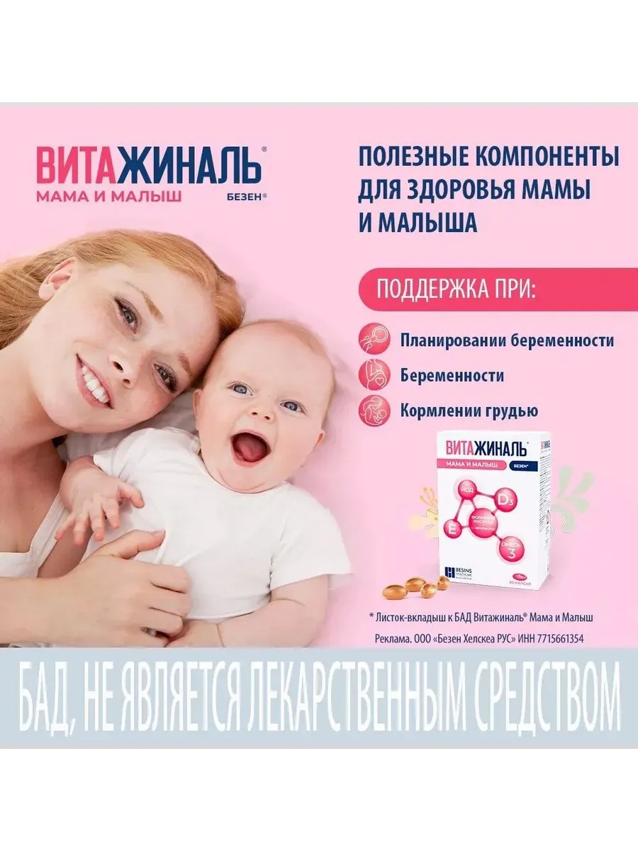| Торговое наименование | Биологически активная добавка к пище «ВИТАЖИНАЛЬ® МАМА И МАЛЫШ БЕЗЕН®». |