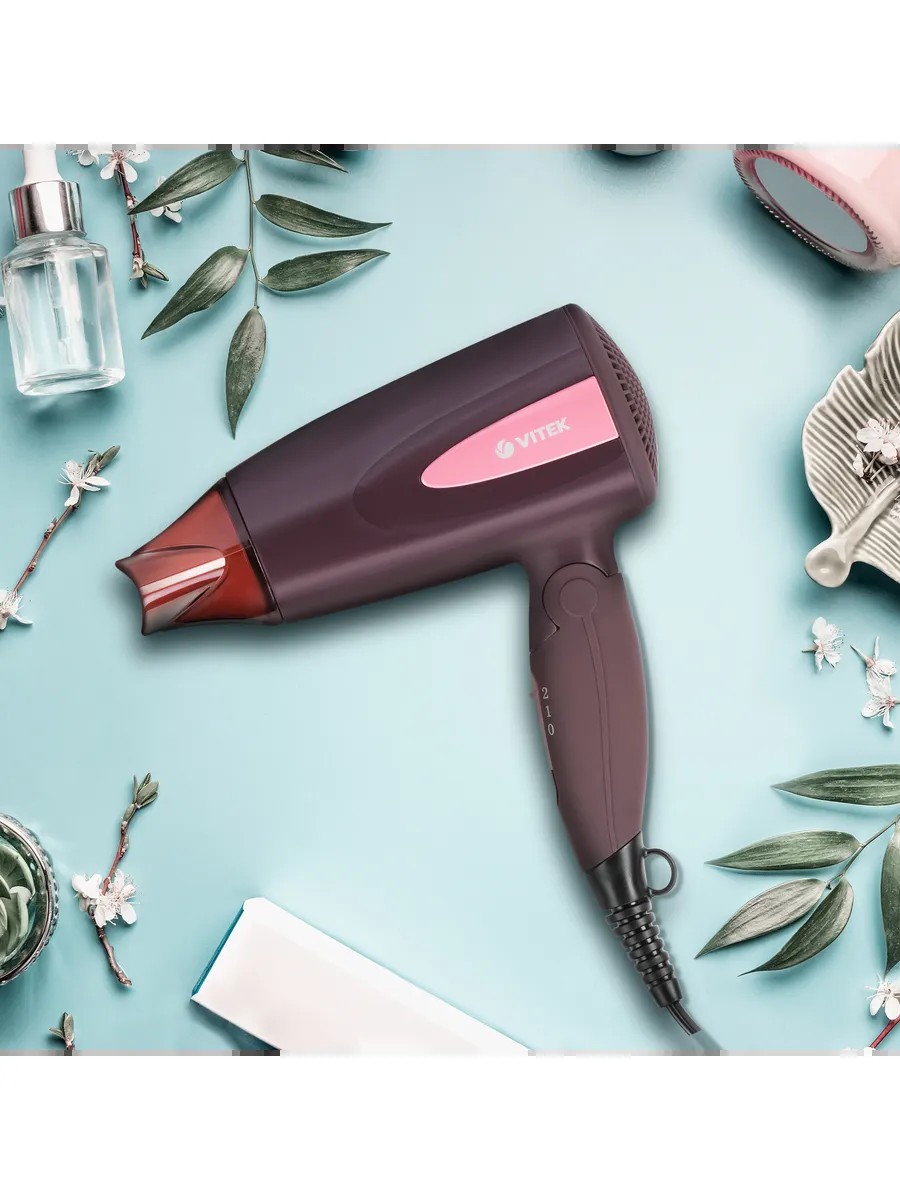 The compact VITEK VT-2261 hair dryer features a foldable design and will keep you looking polished while traveling or after a workout. Adjust the airflow settings to your liking and gently dry your hair.