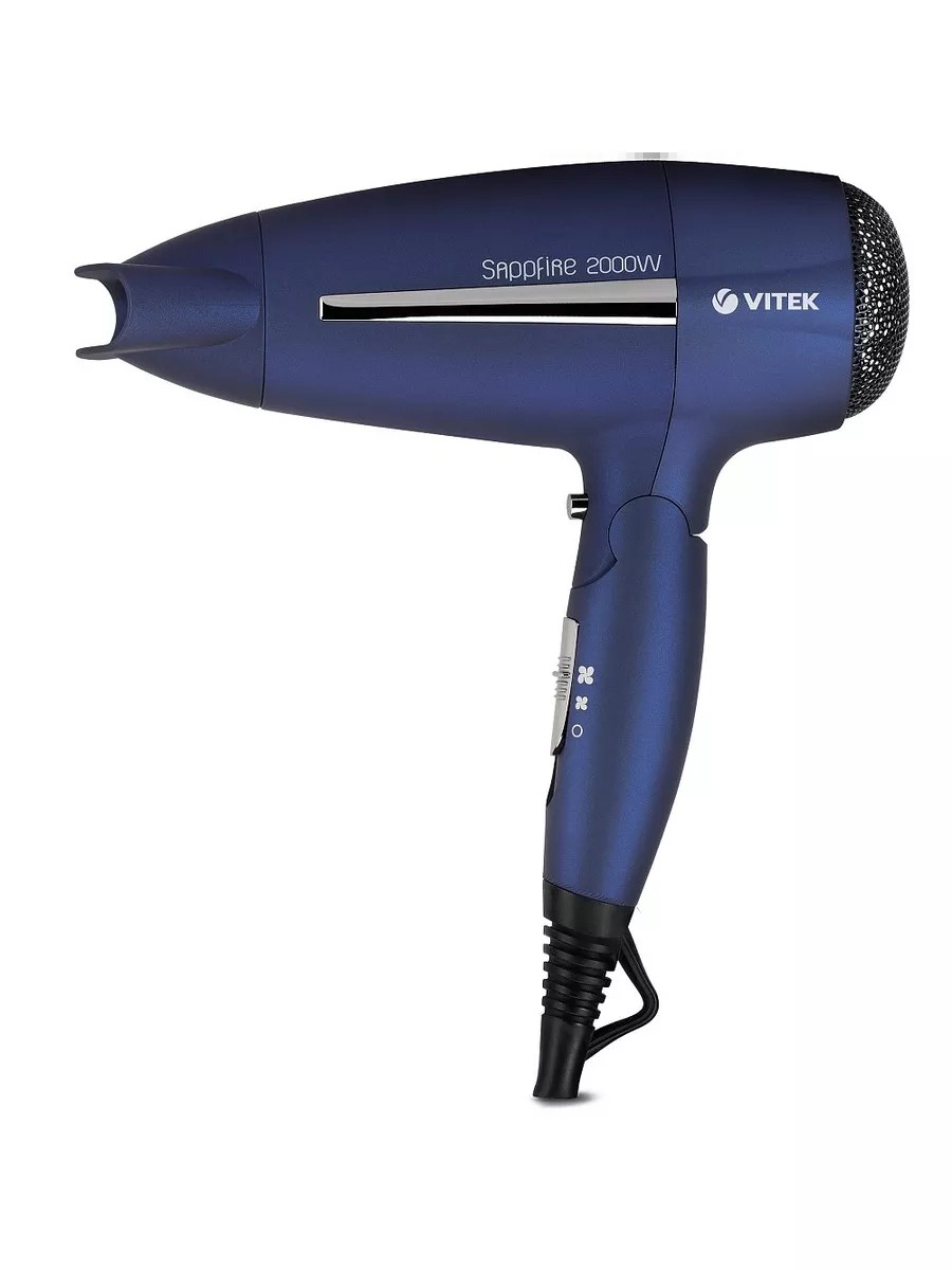 Фен Vitek VT-1309 B (синий) имеет 4 температурных режима и 2 скорости воздушного потока. В наличии – система защиты от перегрева, ионизация, позволяющая сохранить структуру волос во время сушки. Предусмотрена функция подачи холодного воздуха. В комплекте вместе с моделью вы получаете насадку-концентратор.Характерной особенностью фена Vitek VT-1309 B является складная конструкция, что позволяет брать фен с собой – он легко поместится в большой сумке или специальном чехле. Удобство эксплуатации обеспечено противоскользящим покрытием, благодаря чему модель легко держать в руке.